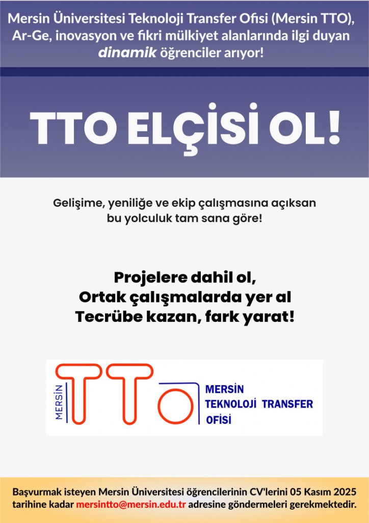 Mersin Üniversitesi (MEÜ) Fikri Mülkiyet Hakları Kurulu, 01 Ekim 2025 tarihinde toplandı. Mersin Teknoloji Transfer Ofisi’nin (TTO) koordinatörlüğünde gerçekleştirilen toplantıda yeni buluşun Türk Patent ve Marka Kur