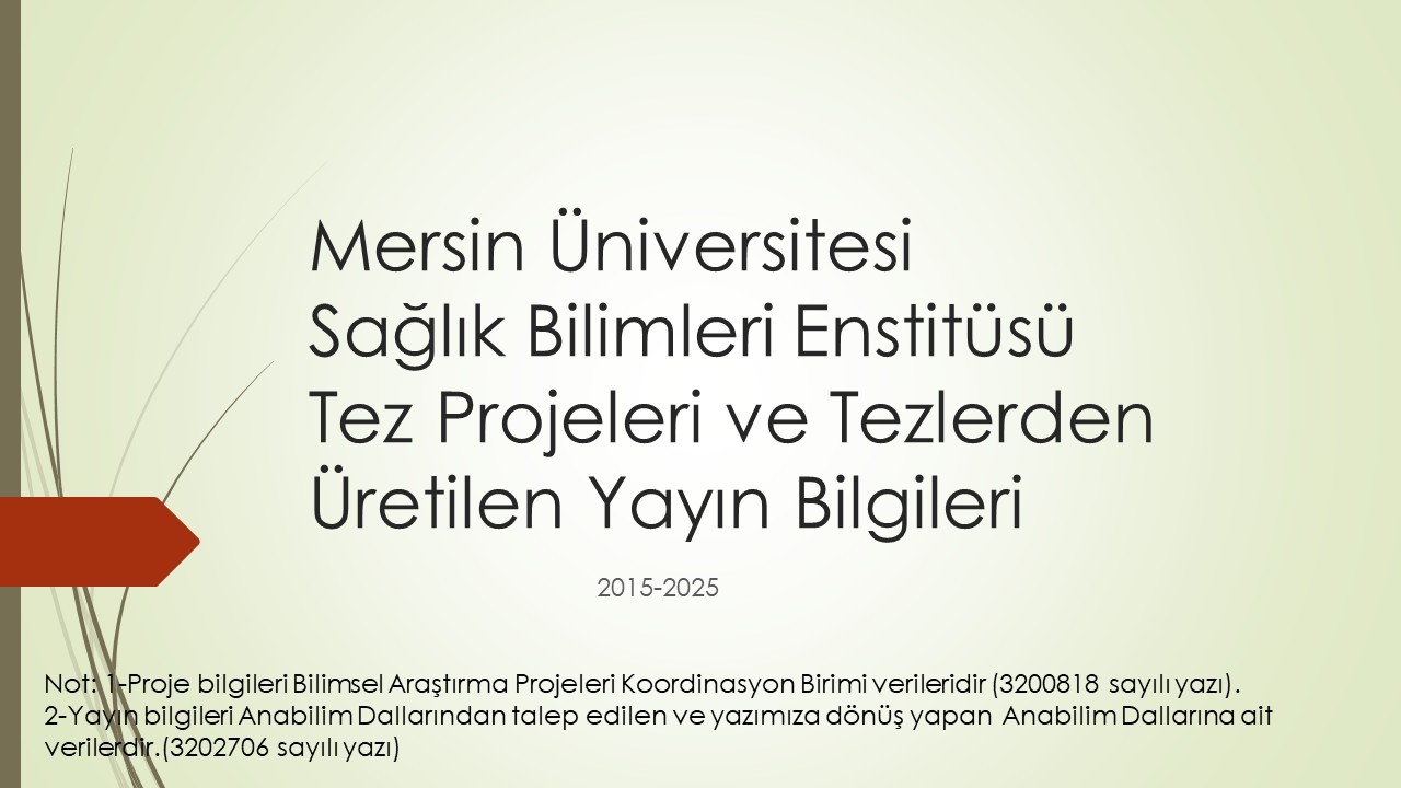 Enstitümüz Yüksek Lisans ve Doktora Tezlerinden Üretilen yayın ve proje sayıları analiz edilerek sunulmuştur. Öğrencilerimize ve Danışmanlarımıza öz verili çalışmaları için teşekkür ediyor ve