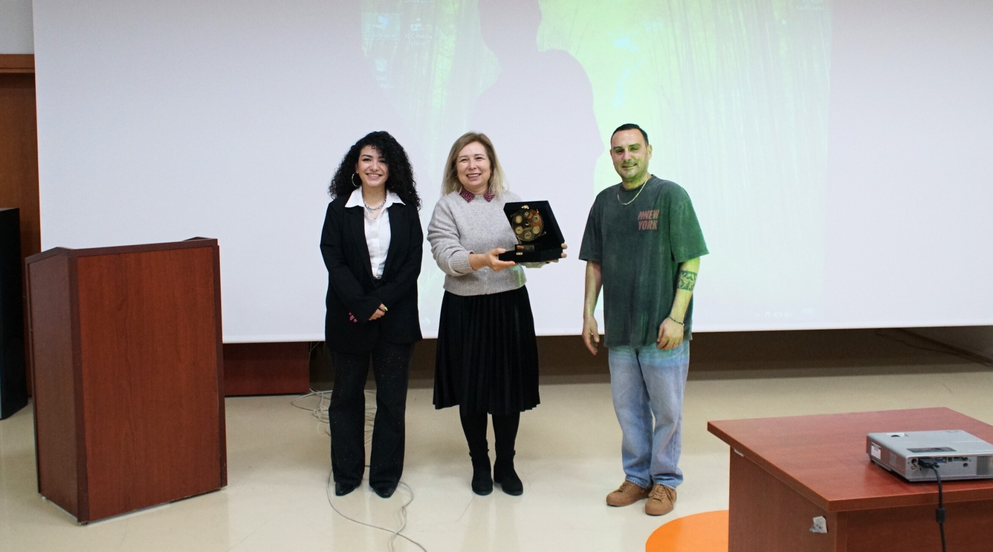 Söyleşi sonunda Doç. Dr. Aslıhan Ardıç Çobaner tarafından Bağrık’a İletişim Fakültesi Dekanı Prof. Senem Duruel Erkılıç adına sunulan bir teşekkür belgesi takdim edildi. Bağrık daha sonra bölüm öğretim elemanları ve öğrencilerle birlikte hatıra fotoğrafı çektirdi.