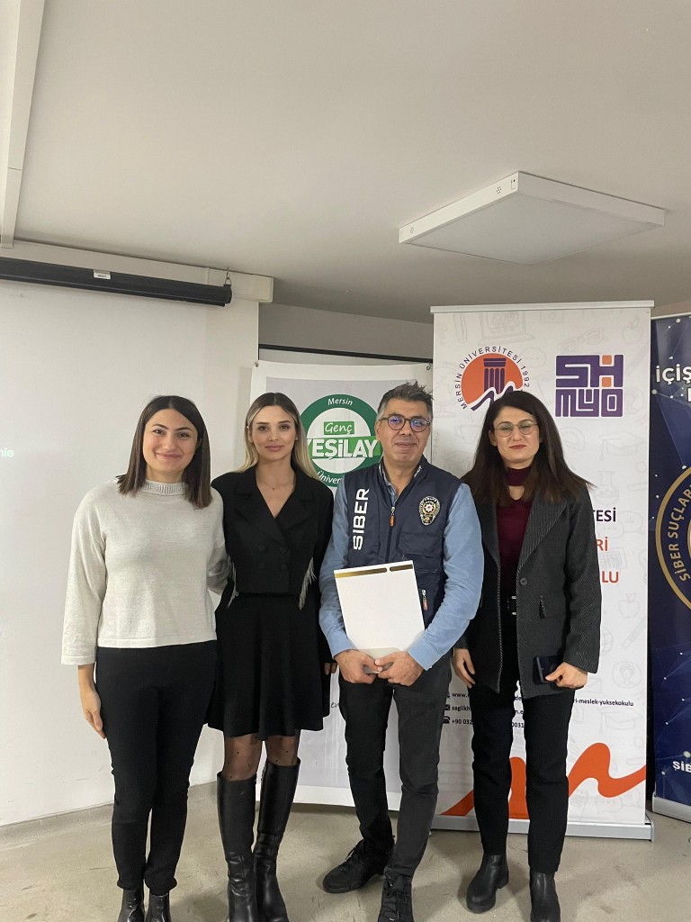 Meslek Yüksekokulumuz ev sahipliğinde; Genç Yeşilay Topluluğu ve Mersin İl Emniyet Müdürlüğü Siber Suçlarla Mücadele Şube Müdürlüğü iş birliğiyle
