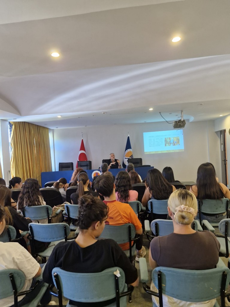 Meslek Yüksekokulumuzda 19 Şubat 2026 tarihinde, Mersin İl Emniyet Müdürlüğü Terörle Mücadele Şube Müdürlüğü Bilgilendirme ve Önleme Faaliyetleri (BÖF) Büro Amirliğinde görevli polisler tarafından öğrencilerimize yö