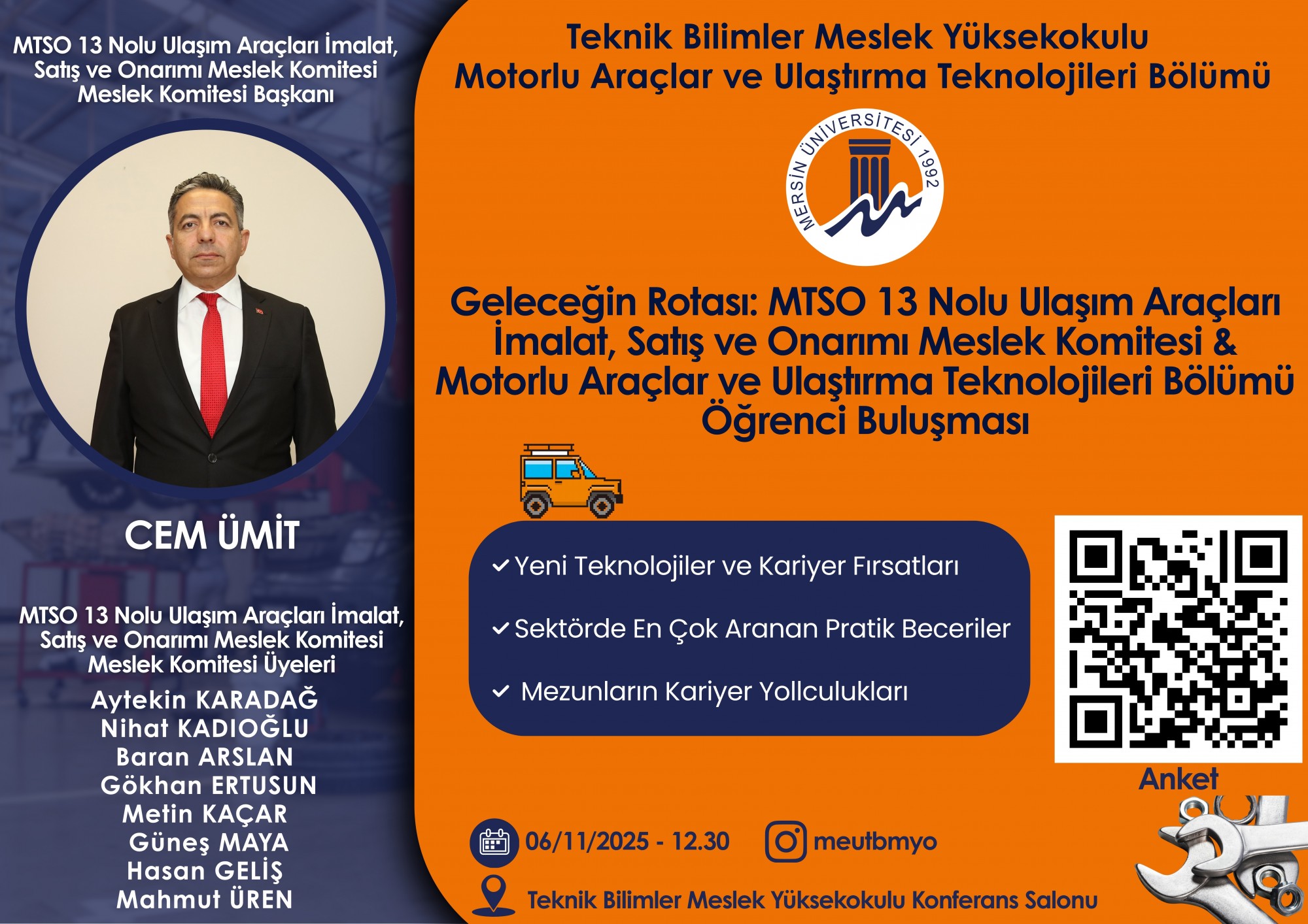 Meslek Yüksekokulumuz tarafından düzenlenen “Mezundan Mesleğe: Otomotiv Sektöründe Kariyer Yolculuğu” başlıklı söyleşi, 26 Şubat 2026 tarihinde bölüm öğrencilerimizi